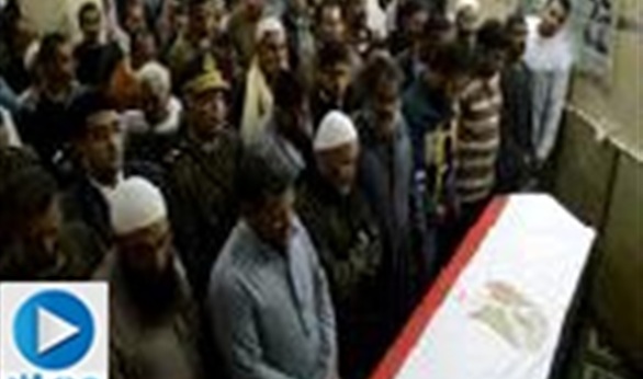 شيع أهالى عزبة أبوشوشة بقرية مصطاى، التابعة لمركز قويسنا، فى محافظة المنوفية، جثمان شهيد الشرطة رمضان غنيمى عبدالصمد، عقب إقامة جنازة عسكرية للشهيد على أضواء الكشافات لانقطاع التيار الكهربائى.