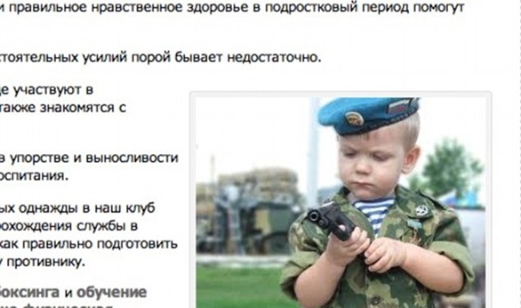 يتدرب الأطفال الذين لا يتجاوز عمرهم سن الخامسة، والشباب الذين يحلمون بالانضمام إلى وحدات النخبة في الجيش الروسي والقتال تحت قيادة الرئيس فلاديمير بوتين، في النادي لتعلم طريقة خوض المعارك وجهاً لوجه، واستخدام المعدات العسكرية، ويتعلم الأطفال الذين تتراوح أعمارهم 12 عاماً كيفية إطلاق النار من بنادق الكلاشنيكوف والأسلحة الصغيرة الأخرى، كما يتعلمون طريقة القفز بالمظلات.