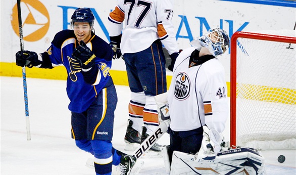 "بلوز" يفوز على "مابل ليفز" في لقاء مثير بدوري هوكي الجليد