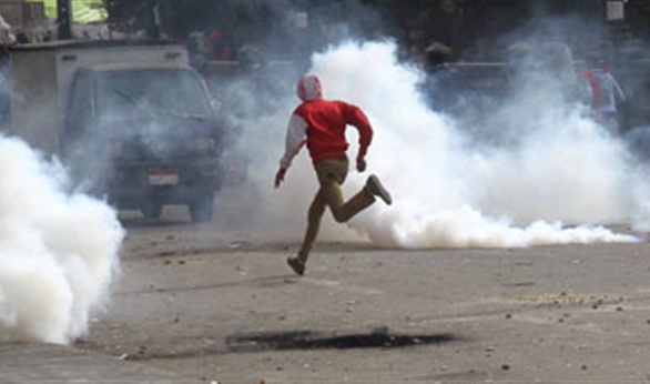 ويشهد الشارع حالة من الكر والفر وسط تبادل لاطلاق الأعيرة النارية من قبل مسيرة الاخوان واطلاق قنابل الغاز من قبل قوات الامن.