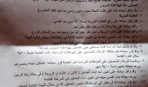 وبين جاد موافقة الفريق على حضور اعضاء اللجان النقابية الثلاثة فى اجتماعات مجلس ادارة الهيئة واحضار جهاز اشعة رنين بمستشفى هيئة قناة السويس مع تشكيل لجنة لدراسة اقامة مستشفى طبى للعاملين بهيئة قناة السويس ببورفؤاد.