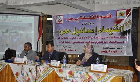 كرم قسم الفلسفة بجامعة المنيا، برئاسة الدكتور بهاء دوريش رئيس قسم الفلسفة، الشيماء إسماعيل محرم المعلمة بإدارة بنى زار التعليمية ، لفوزها بالمركز الأول على مستوى العالم فى مسابقة ميكروسوفت للمعلمين المبدعين، التى أقيمت بمقر الشركة بنيويورك بالولايات المتحدة الأمريكية.