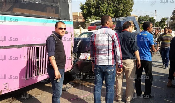 بالصور..إصابة 4 جنود فى تصادم سيارة تأمين مساجين سجن دمو بأتوبيس عام