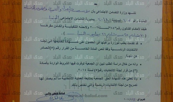 حصلت مؤسسة العدل والتنمية وحقوق الإنسان بالمنيا، على موافقة من وزارة التضامن الاجتماعى لتقديمها للجنة العليا للانتخابات الرئاسية، لمتابعة سير العملية الانتخابية.