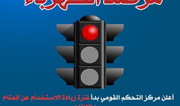 أعلن مركز التحكم القومي تجاوز أحمال الكهرباء السعة القصوى للشبكة، لافتا الى أنه سيضطر لفصل الكهرباء ويمكن تقليل فترة الفصل أو تفاديها بتخفيض الاستهلاك.