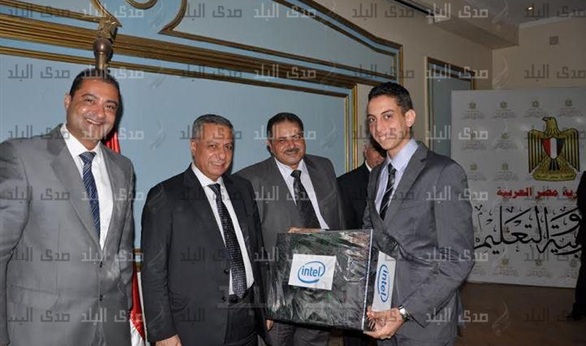 كرم الدكتور محمود أبو النصر، وزير والتعليم، الطلاب أصحاب المشروعات الفائزة في مسابقة إنتل ISEF العالمية، بحضور محمد سعد، المشرف على قطاع التعليم العام، ومحسن عبد العزيز، رئيس الإدارة المركزية لنظم وتكنولوجيا المعلومات، وكريم الفاتح، مدير شركة إنتل في مصر.
