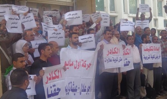 وقفة احتجاجية لعشرات المعلمين أمام النقابة تندد بحكم فرض الحراسة وتطالب بالكادر