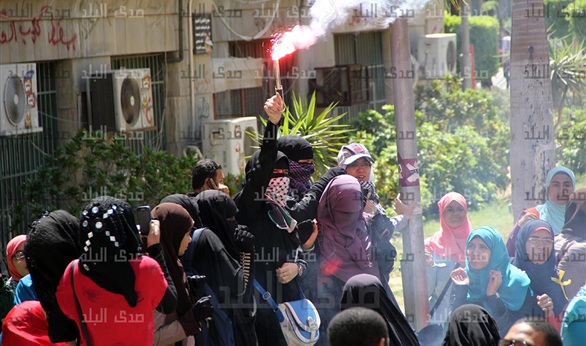 وردّد الطلاب هتافات يسقط يسقط حكم العسكر مصر دولة مش معسكر شمال يمين امتحنوا المعتقلين، وأشعلت الطالبات المشاركات الشماريخ في فاعليات حركة طلاب ضد الانقلاب الشماريخ.