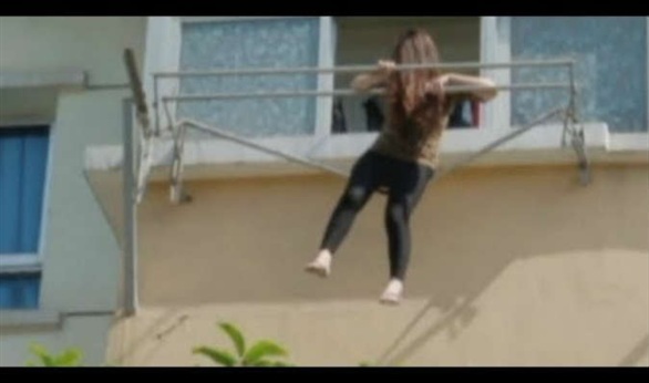 لحظات فارقة بين الحياة والموت هذا ما يؤكده مقطع تداوله مستخدمو مواقع التواصل الإجتماعى لفتاة ألقت بنفسها من شرفة منزلها بالطابق الرابع إلا أن الحظ أنقذها بعد أن تعلقت فى حبل الغسيل لينقذ حياتها ، حيث تعلقت الفتاة بحبل الغسيل وتمسكت به بعدها انتشلها رجال الإنقاذ.
