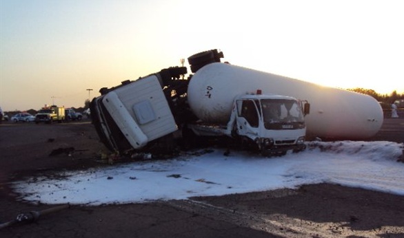 انقلاب سيارة نقل محملة بـ 15 طن بنزين بطريق القاهرة - السويس
