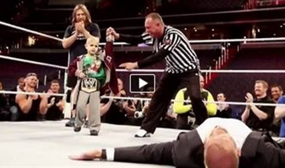 وأرسل الوالد قصة ابنه إلى الشركة لتستجيب له ويجتمع جميع أبطال WWE حول حلقة المصارعة قبل دخول الجمهور ليدخل الطفل بصحبة المصارع دانيال برايان ويصارع تريبل إتش الذى مثل سقوطه بعد تلقيه لكمة من الطفل ليقوم أحد الحكام بالعد حتى 3 ليفوز الطفل ويحقق أهم أمنية فى حياته.