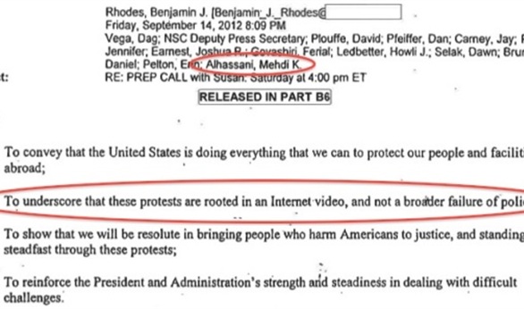 وأوضح أنه خلال التحقيقات حول هجوم بنغازي تم الكشف عن بريد الكتروني يوضح علاقة مهدى الحسنى وهو على علاقة بالإخوان ويمتلك خلفية مشابهة لهوما عابدين التى عملت مساعدة لفترة طويلة مع هيلارى كلينتون وزيرة الخارجية السابقة، وذلك حسبما ذكر وليد شعبيات العضو السابق بمنظمة التحرير الفلسطينية.