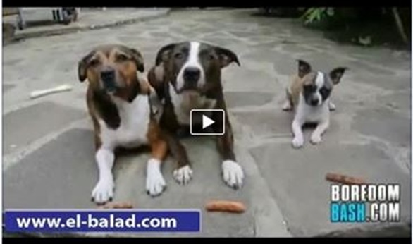 تداول مستخدمو مواقع التواصل الاجتماعية مقطعا لفيديو يظهر فيه أصغر كلب وهو يسرق بسرعة نصيب كلبين أكبر حجماً منه من الطعام.