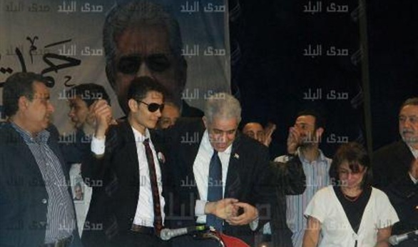 فى لفتة إنسانية، احتفل المرشح الرئاسى حمدين صباحى، مساء أمس، الأحد، بعيد ميلاد محمد دومة، الابن الروحى له ومؤسس التيار الشعبى بالبحيرة، وهو أحد مصابى الثورة والذى فقد بصره فى ثورة 25 يناير.