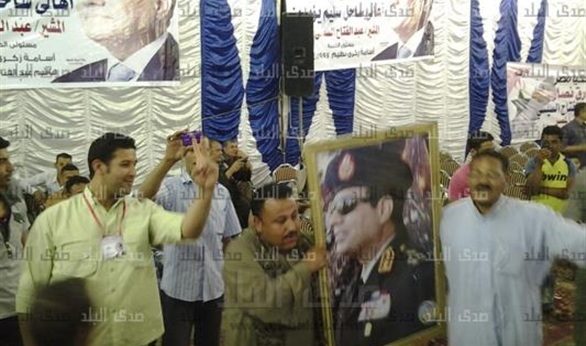 وبدأ المؤتمر بالطبل والمزمار ورفع صور المشير على أغنية تسلم الأيادي والأعلام المصرية.