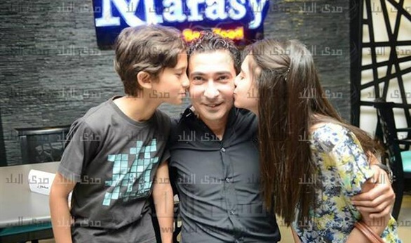 "بركات" يلتقط صورة تذكارية مع ابنيه فى مطعمه الجديد