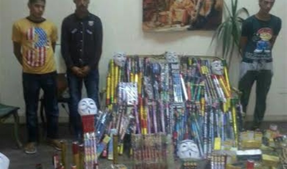 تمكن الرائد وائل غانم رئيس مباحث قسم شرطة حلوان من ضبط 3 بائعين اثناء تواجدهم بميدان محطة حلوان وبحوزتهم 1500 شمروخ و 17 ألف صاروخ و30 عبوة من البارود على شكل تورته.