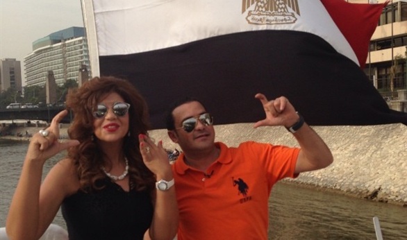 وحرص رجب وبوسي شلبي على التقاط الصور لهما سويا وهما يرفعان علامة تأييد المشير السيسي.