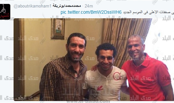 و نشر أبو تريكة عبر صفحته الرسمية على موقع التواصل الاجتماعي "تويتر" صورة تجمعه مع محمد صلاح ووائل جمعة كتب أسفلها عبارة "أولى صفقات الاهلى فى الموسم الجديد" .