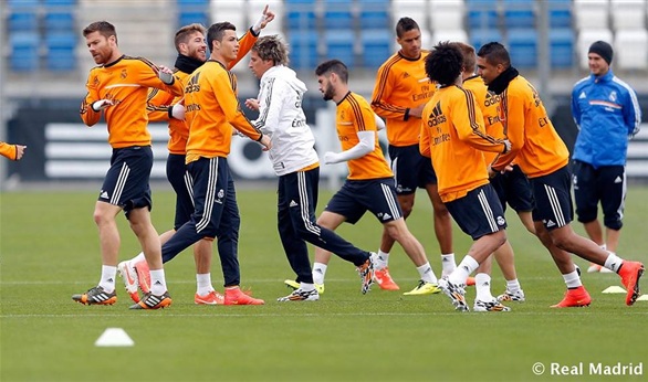 وقام المدرب الإيطالي كارلو أنشيلوتي المدير الفني للنادي الملكي بتقسيم الفريق إلى مجموعتين سبق ذلك دخول جميع أعضاء الفريق في تدريبات لرفع اللياقة البدنية، كما شهد التدريب مشاركة نجم الفريق ومهاجمه الأول البرتغالي كريستيانو رونالدو بعد تعافيه تماما من الإصابة التي تعرض لها وأبعدته عن الملاعب لمدة أسبوعين.