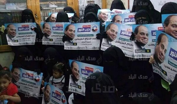 نساء حملة دعم السيسى بـ"حزب النور" تحمل صور السيسى وتطالب بالتصويت له