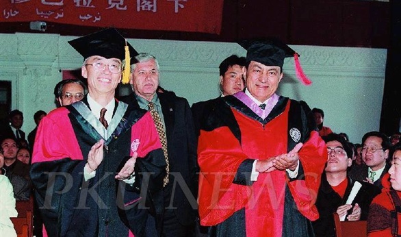 نشر عمر علاء مبارك، حفيد الرئيس السابق حسني مبارك، على صفحته الشخصية على موقع التواصل الاجتماعى "فيس بوك" صورة لجده مبارك أثناء تسلمه إحدى الجوائز فى الصين.