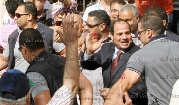 - وجود دعايا وملصقات للسيسي أمام لجنتي 1 و2 بالدقهلية المنصورة مدرسة علي مبارك.