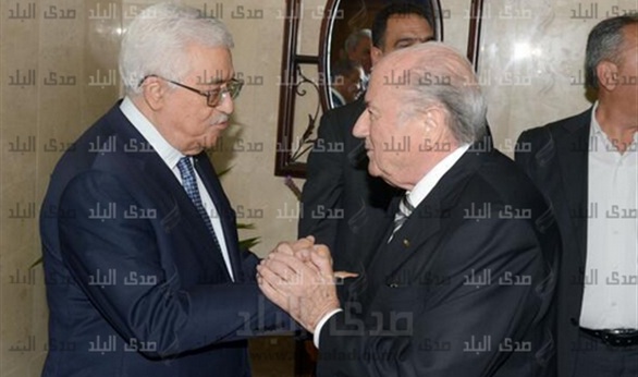 نشر جوزيف بلاتر، رئيس الإتحاد الدولي لكرة القدم عبر صفحته الشخصية على موقع التواصل الاجتماعي"تويتر" صورة له مع الرئيس الفلسطيني محمود عباس أبو مازن على هامش زيارته للأراضي المحتلة لتفقد الأوضاع الرياضية هناك.