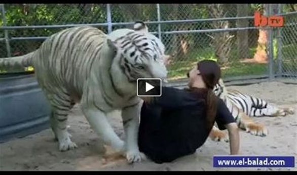 بالفيديو.. امرأة تنام بجانب نمور في حديقة منزلها