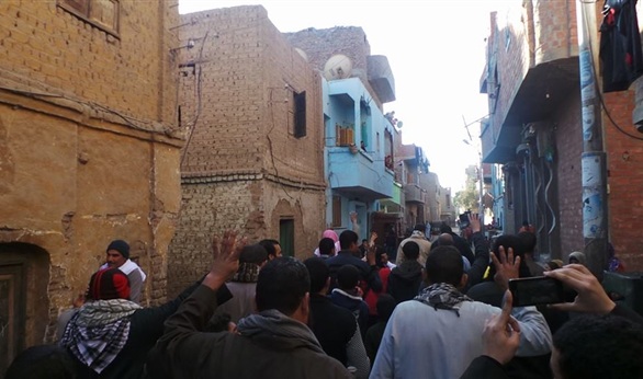 وجابت المسيرة عدد من شوارع القرية مطالبة المواطنين بمقاطعة الانتخابات، وردد المشاركون في المسيرة هتافات مناهضة للجيش والشرطة رافعين لافتات مطبوع عليها صور للرئيس المعزول وإشارات رابعة.