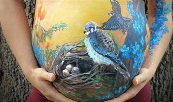 طريقة جديدة وجذابة لتذكر الأم دائما لفترة حملها والتقاط الصور التذكارية حيث تتهاتف النساء الحوامل فى أمريكا على رسم لوحات فنية على بطونهن والتى تختلف بين الرسم التخيلى لوضعية الجنين داخل الرحم أو رسومات تعبر عن الحب والحنان التى تشعر به الأم تجاه طفلها .