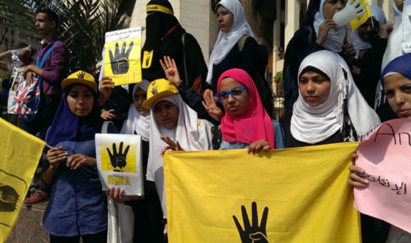 طالبات بالازهر يتظاهرن داخل المدينة الجامعية رافعات صور"المعزول"