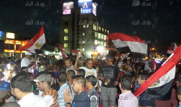 حيث استمعوا لبيان اللجنة العليا لانتخابات الرئاسة على شاشات عرض كبيرة جهزها محمد المدرك مالك فندق سيجال المواجهة للميدان حيث تم وضع مسرح كبير به سماعات وفور إعلان النتيجة انطلقت الاحتفالات على أنغام أغنية "تسلم الأيادى" و"بشرة خير" كما اشتعل الميدان بالألعاب النارية.