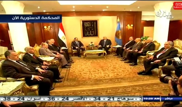 صالون المحكمة الدستورية العليا يشهد لقاء تذكاريا للرئيسين المؤقت منصور والمنتخب السيسى