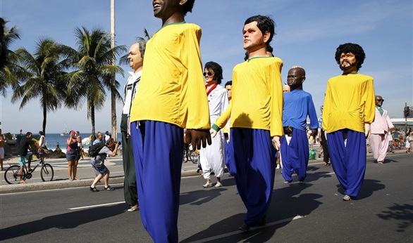 شهد شاطئ كوباكابانا بالعاصمة البرازيليلة "ريو دي جانيرو"، مسيرة لعاشقي منتخب السامبا، حاملين "تماثيل" أعظم لاعبي كرة القدم البرازليين، وأهم المشاهير، وفي مقدمتهم النجم "عبيدي بيليه".