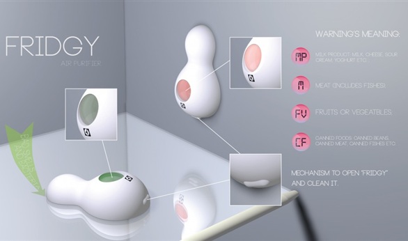 ويتميز Fridgy، الجهاز الأنيق صغير الحجم بقدرتها على امتصاص الروائح والبكتيريا والكشف عن جودة المنتجات المخزنة بالثلاجات.