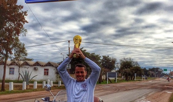 بالصور.. مشجع بريطاني يستقل دراجة نارية ويصل البرازيل بعد رحلة استغرقت 4 أشهر