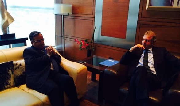 فور عودته من المشاركة في الاجتماع الثالث لوزراء خارجية دول جامعة الدول العربية والاتحاد الأوروبي والذي عقد في أثينا، التقى وزير الخارجية نبيل فهمي مستشار الأمن القومي البريطاني كيم داروك.
