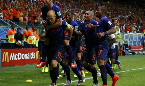 تصدرت عبارات المديح والثناء الصفحات الأولى للصحف الهولندية على امتداد البلاد السبت غداة الفوز "التاريخي" للفريق البرتقالي على إسبانيا في أولى مباريات المجموعة الثانية من مونديال البرازيل لكرة القدم.